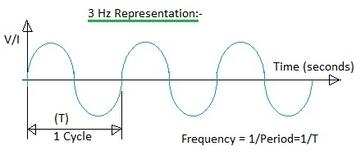 Frequency refers to the number of cycles or periods of a waveform (such as voltage or current) that occur in one second. For instance, if a waveform completes 5 cycles in a second, we say its frequency is 5 Hertz (Hz).